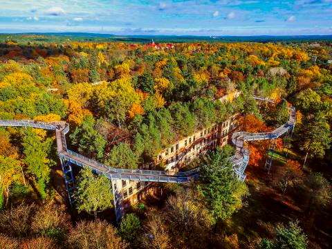 Nach etwa zwei Stunden geht es weiter nach Beelitz-Heilstätten. Dort legen wir eine Mittagspause mit Gelegenheit zum Essen ein. Anschließend nehmen wir an der Führung „Zeitenwandel – Wandelzeiten“ teil – einem spannenden Spaziergang durch die wechselvolle Geschichte der Beelitzer Heilstätten. Abgerundet wird der Aufenthalt mit einem Besuch des Baumwipfelpfads (ca. 700 m lang, barrierearmer Zugang per Aufzug).
